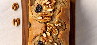 Ce pain est un hommage à l’automne, aux marchés de fruits secs, aux tablées généreuses. La douceur naturelle des raisins s’accorde au croquant des noix, dans une pâte longuement fermentée qui développe des notes complexes et chaleureuses. Il est idéal pour créer des contrastes sucrés-salés : avec un roquefort crémeux, un brie affiné ou même une compote maison. Toasté, il devient un dessert rustique avec une cuillerée de yaourt ou de miel.