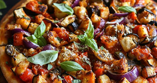Un hommage à la terre, aux potagers divers et aux récoltes généreuses. Cette pizza colorée accueille des légumes de saison lentement rôtis au four : courge sucrée, aubergine fondante, poivron rouge caramélisé. Un filet d’huile d’olive infusée au thym et au romarin réveille leurs arômes, tandis que quelques graines de courge grillées ajoutent un croquant inattendu. Chaque bouchée est une variation de texture et de goût, un équilibre entre douceur et grillé, entre humidité et croustillant. Elle parle d’automne, de cuisine maison, de marché du dimanche matin.